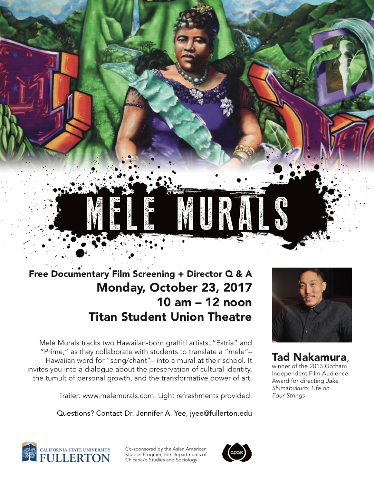 I’ll be headed to CSU Fullerton to screen Mele Murals on 10/23.